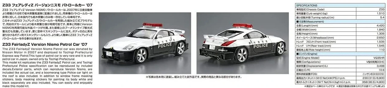 Aoshima The Patrol Car No.2 1/24 NISSAN Z33 Fairlady Z Version Nismo Patrol Car ’07 Plastic Model
