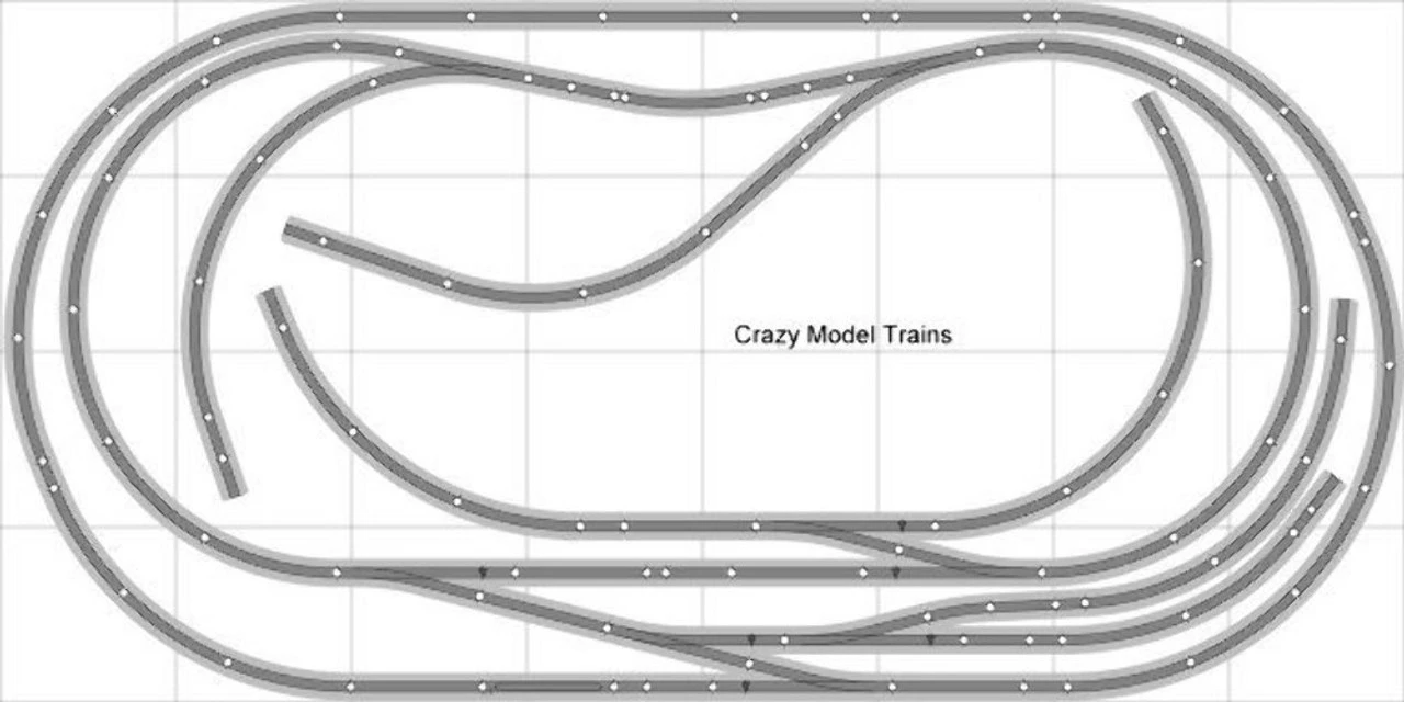 Listed here is a brand-new Crazy Model Trains HO scale Layout. All our layouts use Bachmann E-Z Track with Gray Roadbed and Code 100 Nickel Silver Rails. With this layout you will receive all the track, switches, power rerailer, and easy to follow layout plans needed to build this layout. You will get all the track needed to build the layout in the picture. A Crazy Model Trains Layout will save you money and time. Most all the Bachmann track comes in packs of 2, 4, 5, or 10 pieces per pack. Sometimes you may only need one or two pieces and then you’re left with pieces you don’t need. Plus, Crazy Model Trains gives you a price way below the retail price. In addition, you’re only paying one shipping charge vs piecing everything together on your own. The layout does not come with any train’s, scenery, or power controllers. You can shop for the rolling stock and Locos separately with the road names you want, plus you can set your own time era. Use your imagination on the scenery, structures, roads, or mountains. All our layouts come in two different versions, one with DCC switches and one with Wired Remote switches. The layout title will let you know which type of switches you’ll get, Wire Remote or DCC Controlled. The only difference between the layouts is the switches. You can run a DCC system on either version. The DCC switches have no wires and pulls power from the track. The wired switches require accessory power from a controller. Crazy Model Trains is making it easy for you with no more trial and error of trying to piece together your own layout design. We have many layouts to choose from if this one is not for you. The Bachmann E-Z Track is designed for beginners to intermediate railroaders and is easy to use. The tracks lock together making it great for on the carpet or on a piece of plywood. If you are looking for one of our layouts to be customized let us know. This is a great hobby for anyone over the age of 14 and will bring many years of enjoyment.