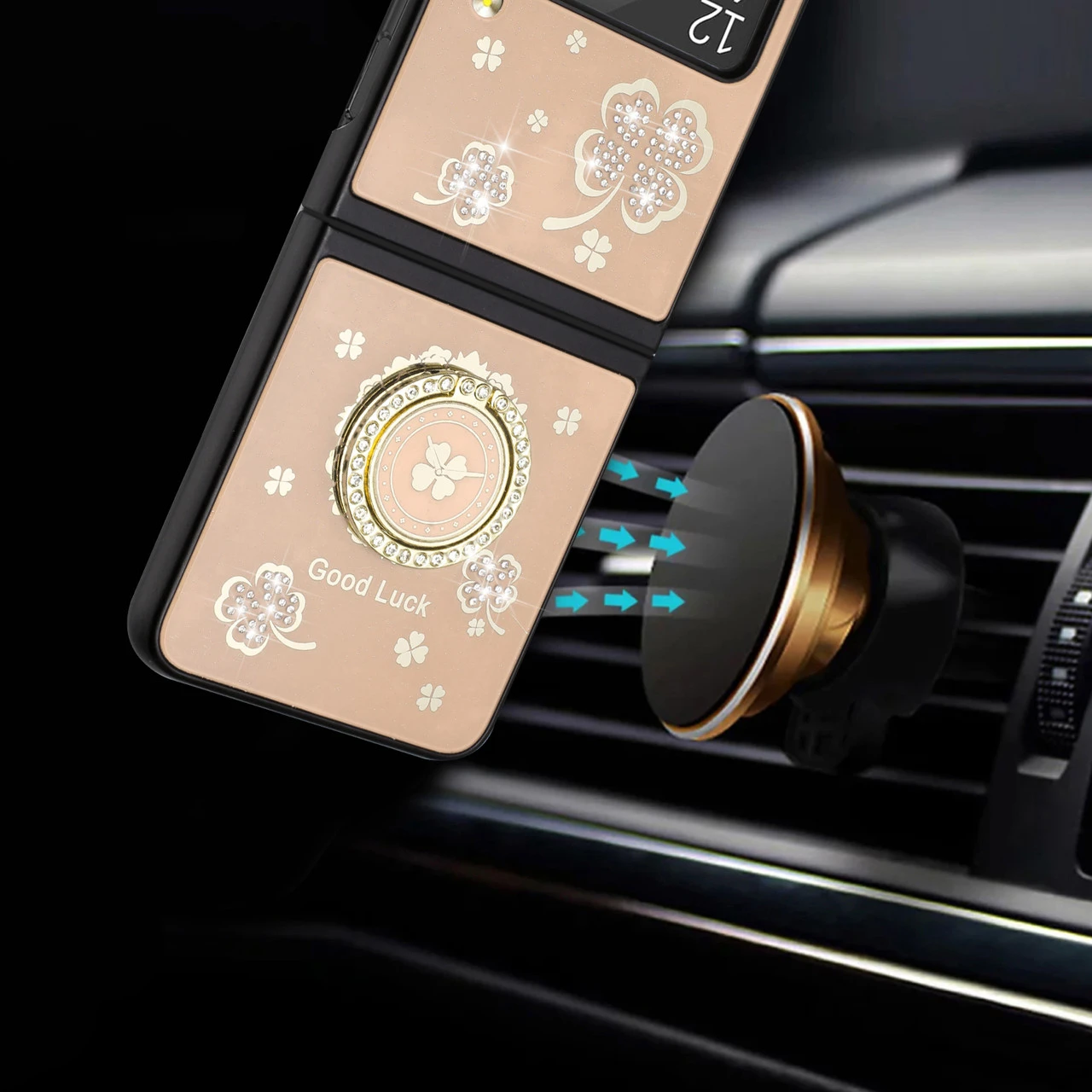 Give your Samsung Galaxy Z Flip 4 the trendy update it deserves! The Four-Leaf Clover Diamond Rhinestone Case protects without being a bulky addition to your phone. It is designed with a slim form factor, keeping the sleek design of your phone intact . Durable against scratches and easy to grip, the cover helps keep your device styling safely.