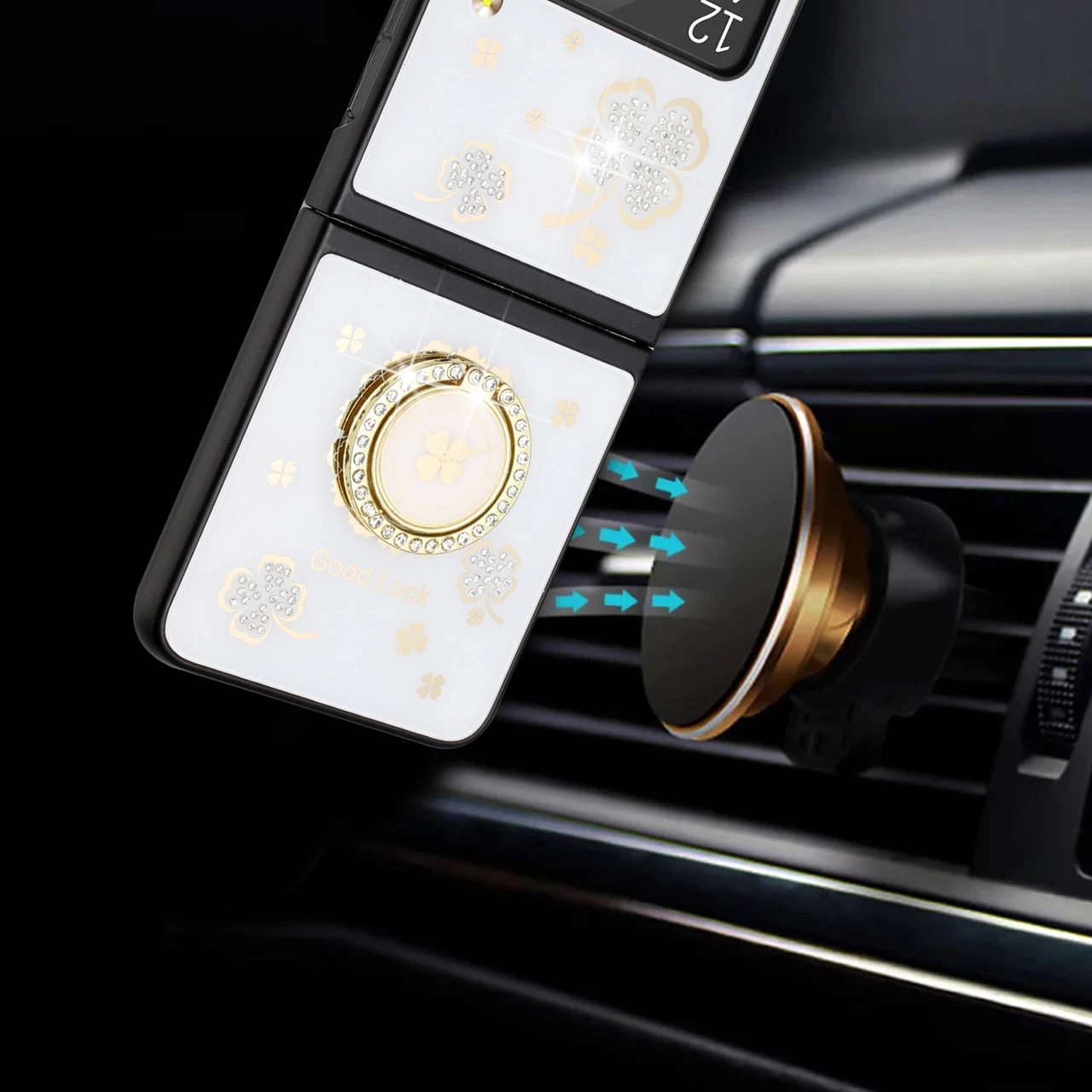 Give your Samsung Galaxy Z Flip 4 the trendy update it deserves! The Four-Leaf Clover Diamond Rhinestone Case protects without being a bulky addition to your phone. It is designed with a slim form factor, keeping the sleek design of your phone intact . Durable against scratches and easy to grip, the cover helps keep your device styling safely.