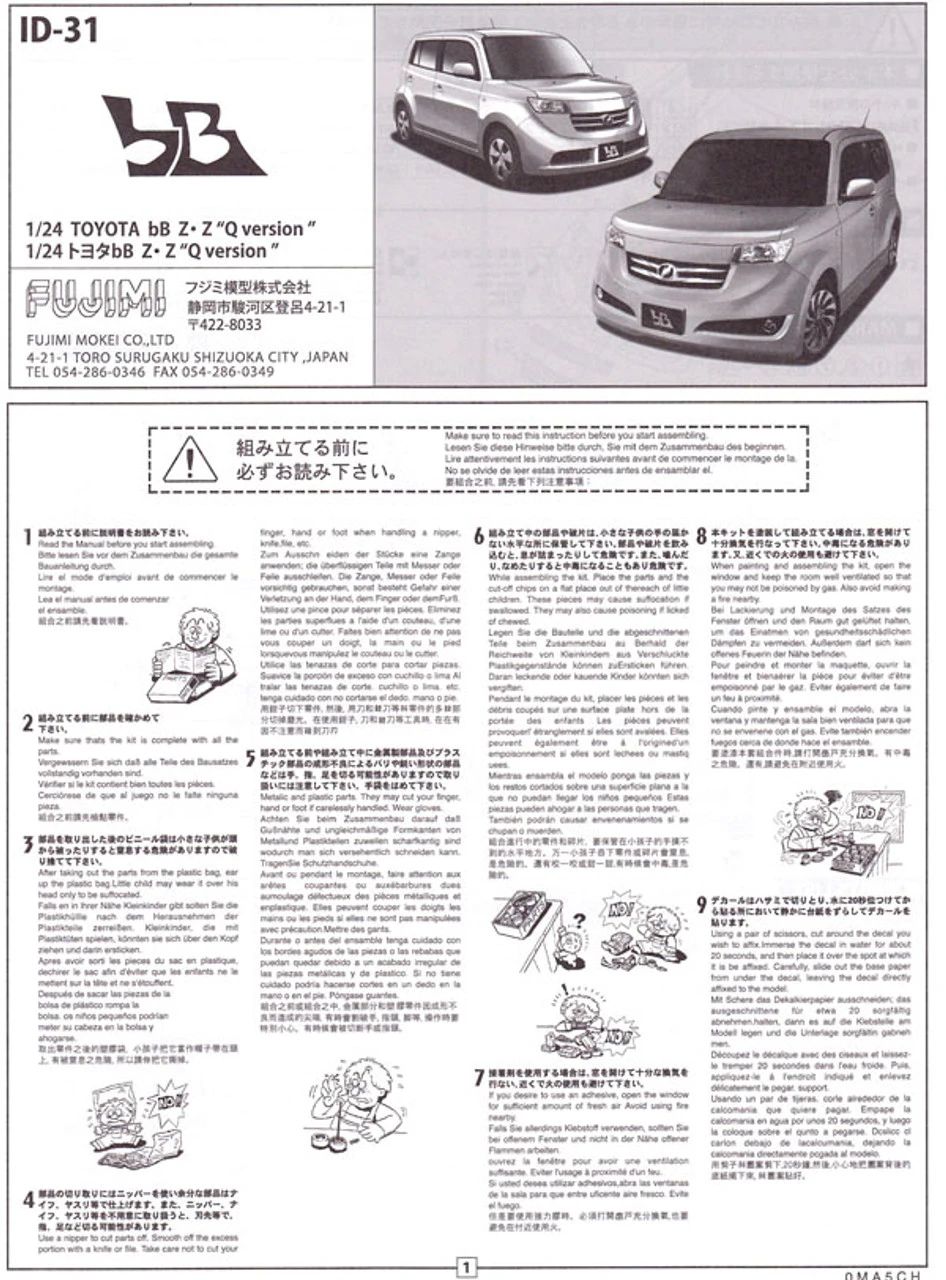 Fujimi ID-31 Toyota bB ZQ Z “Q Version” 1/24 Scale Kit