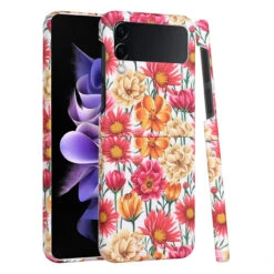 Four-Leaf Clover Diamond Rhinestone Case With Ring Grip For Samsung Galaxy Z Flip 4 – White