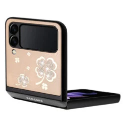Four-Leaf Clover Diamond Rhinestone Case With Ring Grip For Samsung Galaxy Z Flip 4 – Gold