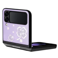 Four-Leaf Clover Diamond Rhinestone Case With Ring Grip For Samsung Galaxy Z Flip 4 – Purple