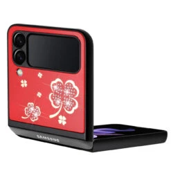 Four-Leaf Clover Diamond Rhinestone Case With Ring Grip For Samsung Galaxy Z Flip 4 – Red