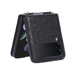 Mandala Flower Leather Protective Cover With Strap For Samsung Galaxy Z Flip 4 – Black