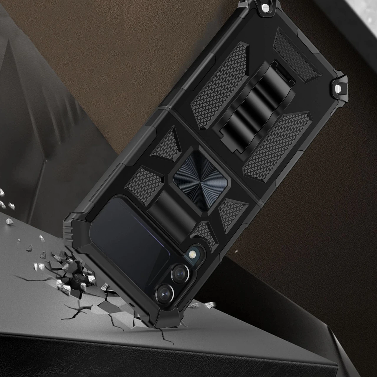 Equip your Samsung Galaxy Z Flip 4 with a 360 degree protection with this new Military Grade Tough Ultra Rugged Hybrid Case. Enjoy a built-in kickstand designed for media viewing, while also compliments the case’s futuristic and rugged military design.