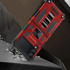 Military Grade Shockproof Hybrid Armor Case With Ring Grip For Samsung Galaxy Z Flip 4 – Red