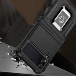 Military Grade Shockproof Hybrid Armor Case With Ring Grip For Samsung Galaxy Z Flip 4 – Black