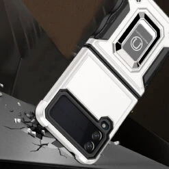Military Grade Shockproof Hybrid Armor Case With Ring Grip For Samsung Galaxy Z Flip 4 – Silver