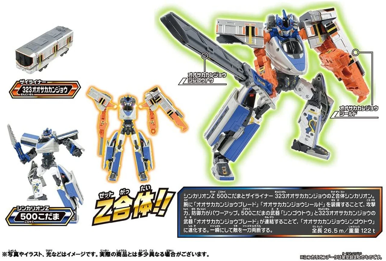 Product details: Shinkalion Z 500 Kodama (3-car train) (1), Zyliner 323 Osaka Loop Line (1), Weapon (1), Instruction Manual (1), Label (1)